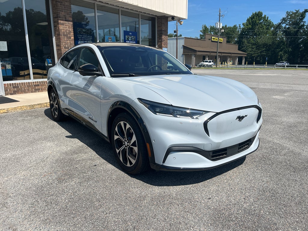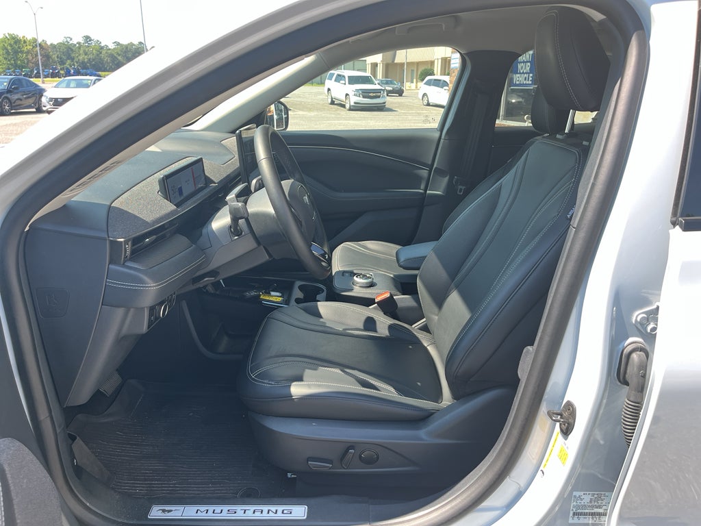 You'll never again be lost in a crowded city or a country region with the navigation system on the vehicle. This vehicle is pure luxury with a heated steering wheel. Protect this vehicle from unwanted accidents with a cutting edge backup camera system. It has a Electric Motor high output engine. Load groceries and much more with ease into this vehicle thanks to the power liftgate. This unit shines with clean polished lines coated with an elegant white finish. The vehicle is rear wheel drive. Maintaining a stable interior temperature in this unit is easy with the climate control system. With the adjustable lumbar support in the Ford Mustang Mach-E your back will love you. This 2023 Ford Mustang Mach-E has an automatic transmission. This model features cruise control for long trips. The leather seats in it are a must for buyers looking for comfort, durability, and style. The perfect balance of space and size. it cruises through the city with ease.